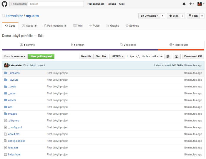 C’est l’arborescence par défaut. Tout dossier dont le nom commence par un tiret bas _ ne sera pas généré tel quel. Par exemple quand Jekyll va générer votre site, il ne va pas créer un dossier layouts, par contre il générera le fichier index.html puisqu'il n'y a pas de tiret bas devant.